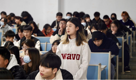 学生代表发言,结合各自学习、工作和生活进行交流。