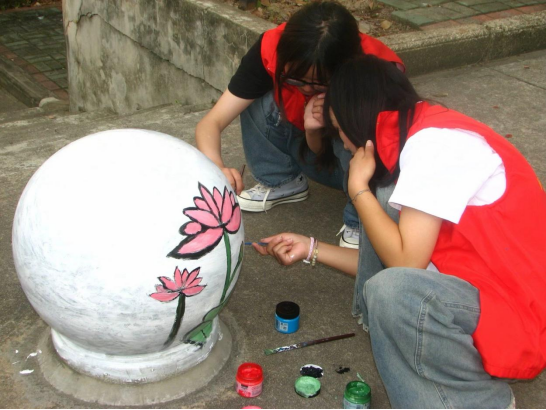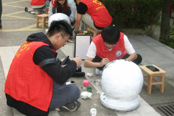巧手画石墩,公益绘文明——经济贸易学院开展石墩彩绘活动