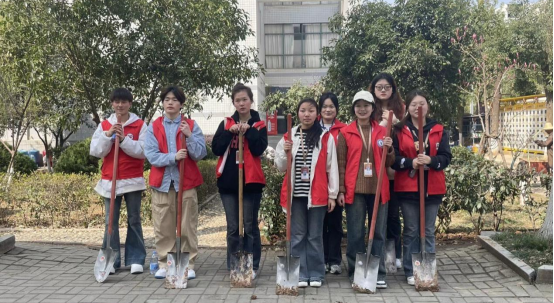 最是一年春光好,植树添绿正当时。植树现场一派火热朝天,志愿者们干劲十足,配合默契,分工协作,有的挥锹培土,有的踩实提苗,处处是忙碌的身影。大家用自己的行动和汗水充分展现了青年的良好风貌与担当,以实际行动响应双碳目标,为美丽校园播新绿、添生机。
