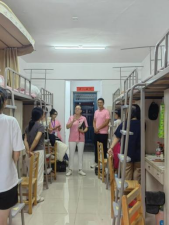 “床铺收拾好了没?”“来学校饮食习惯不习惯?”12日晚,学院领导班子成员与新生辅导员们走进新生宿舍与新生们亲切交谈,关心新生入住情况,提醒学生谨防诈骗,对于学生反馈的问题及时给予回应。