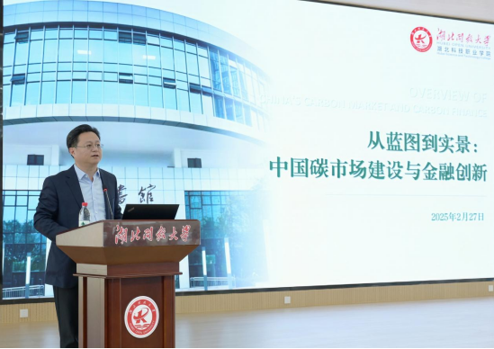 本网讯(通讯员 李兆银/文 刘捷 大学生记者:蔡迪嘉恒、张乃允/图)2月27日,由我校经济贸易学院主办的“中国碳市场建设与金融创新”专题讲座在综合实训楼学术报告厅举行,校长陈志祥以《从蓝图到实景—中国碳市场建设与金融创新》为题,为在场师生带来兼具学术深度与实践价值的专题报告。