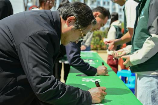 活动现场,一条印有“点碳成金,碳惠湖科低碳生活,从我做起”标语的横幅跃然呈现。师生们纷纷签名并写下低碳宣言,承诺从节约水电、减少浪费、绿色出行等日常细节做起。同学们表示“签下名字的那一刻,感觉多了一份责任感。”