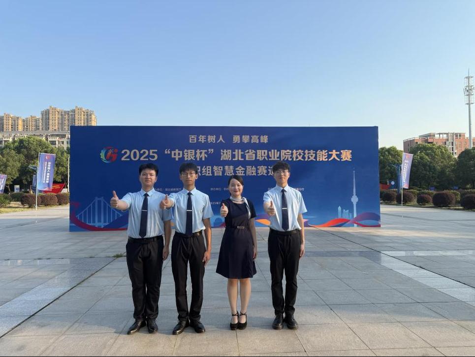 本网讯(通讯员 欧阳岚 文/图)7月3日至5日,2025年“中银杯”湖北省职业院校技能大赛智慧金融赛道在鄂州职业大学举行,全省19所高职院校75名选手同场竞技。经过激烈角逐,由经济贸易学院桂高山担任领队,李蓓蓓、欧阳岚担任指导教师,周劲、朱玉翔、王鑫雨、向光明四名学生组成的参赛团队,凭借扎实的专业知识、娴熟的职业技能与默契的团队协作,斩获一等奖,将代表湖北省出征世界职业院校技能大赛。