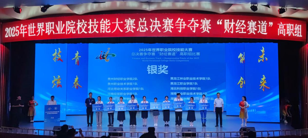 本网讯(通讯员 欧阳岚/文 李蓓蓓、肖莉山/图)8月25日至29日,2025年世界职业院校技能大赛总决赛争夺赛“财经赛道”高职组比赛在山西省财政税务专科学校举行。全国31个省(自治区、直辖市)206支代表队、819名选手同台竞技,参赛规模与竞技水平均创历史新高。经过激烈角逐,由经济贸易学院桂高山担任领队,李蓓蓓、欧阳岚为指导老师,学生周劲、朱玉翔、王鑫雨、向光明组成的参赛团队,凭借扎实的专业知识、娴熟的职业技能与默契的团队协作,在强手如林的赛场上脱颖而出,一举斩获大赛银奖。